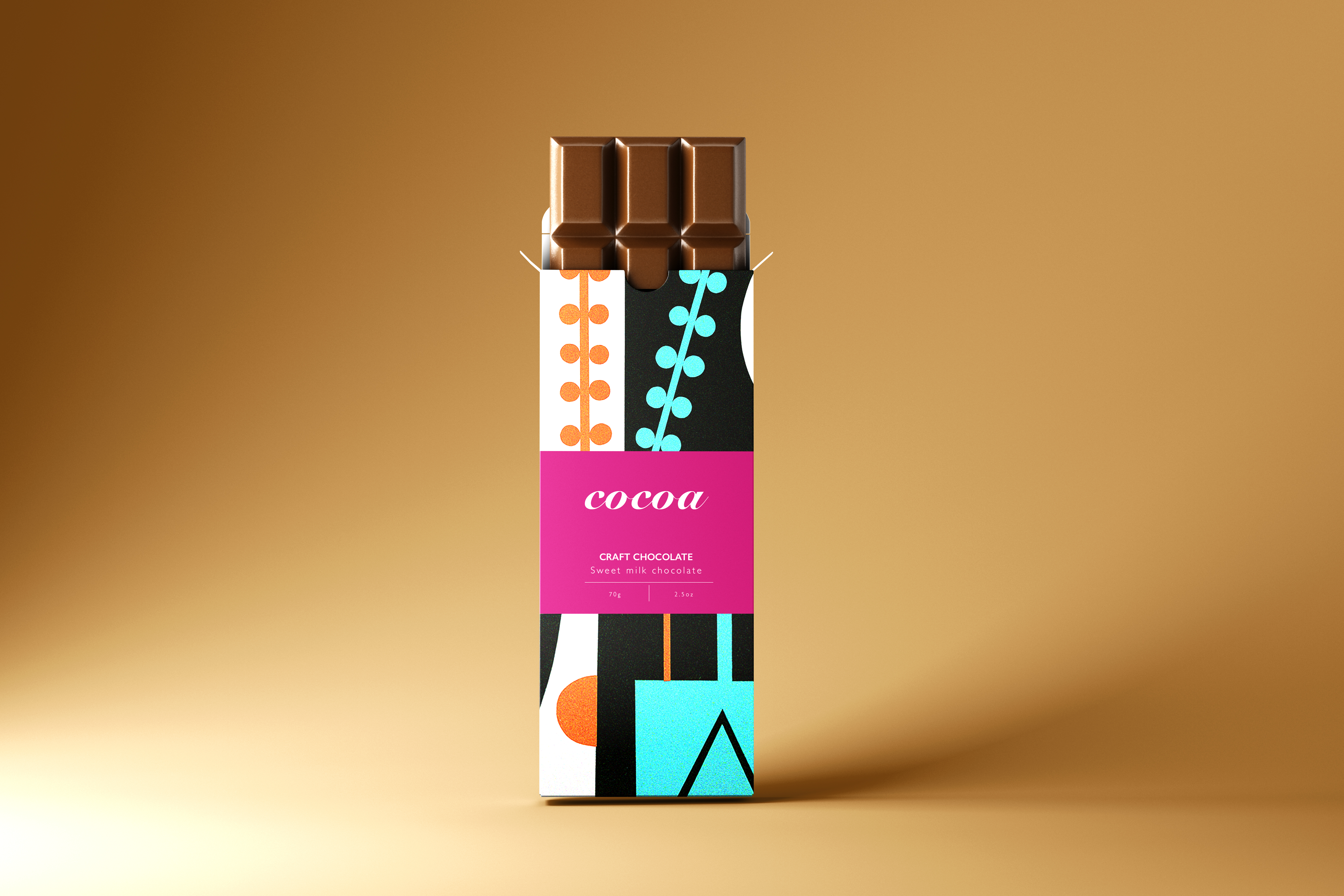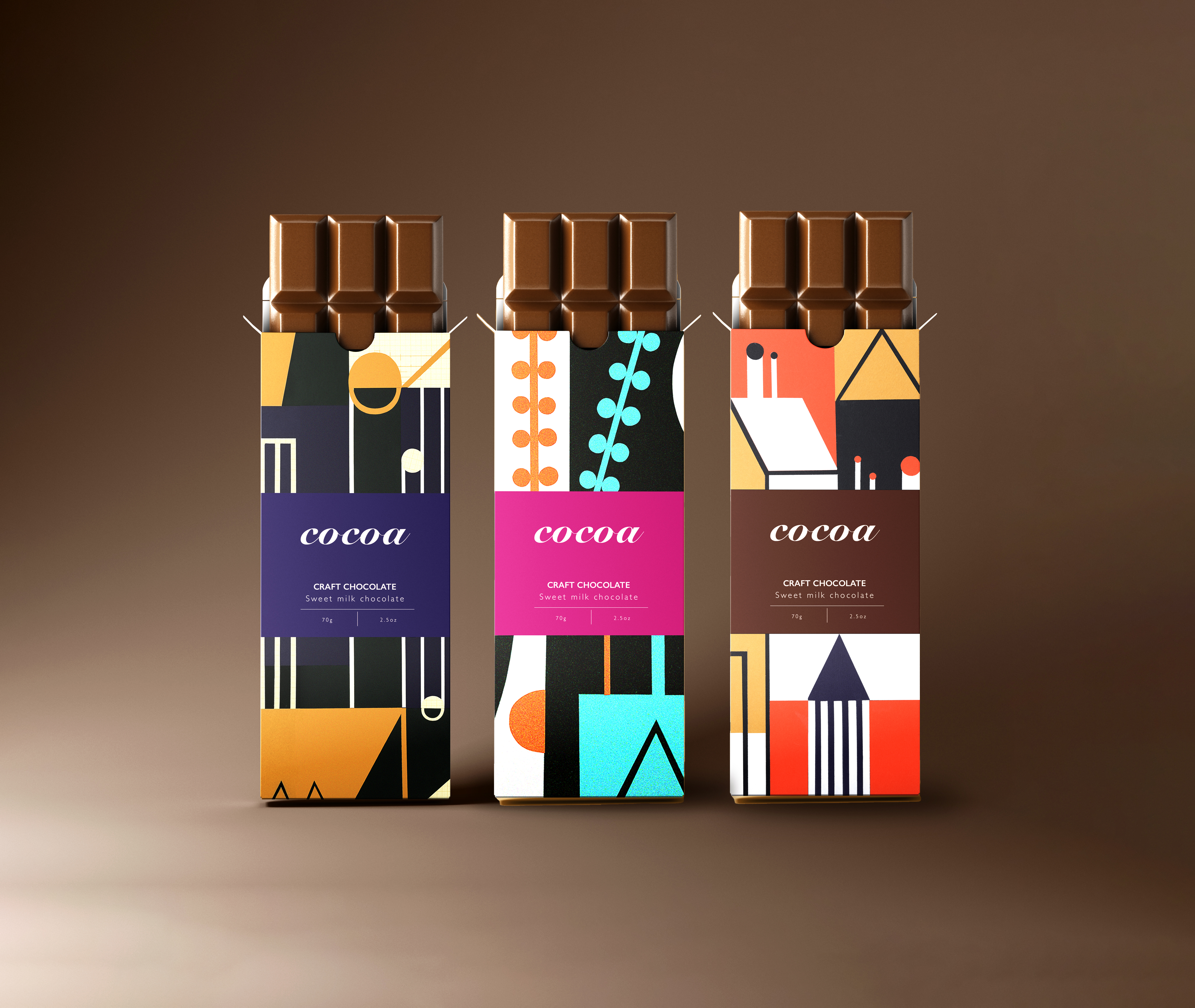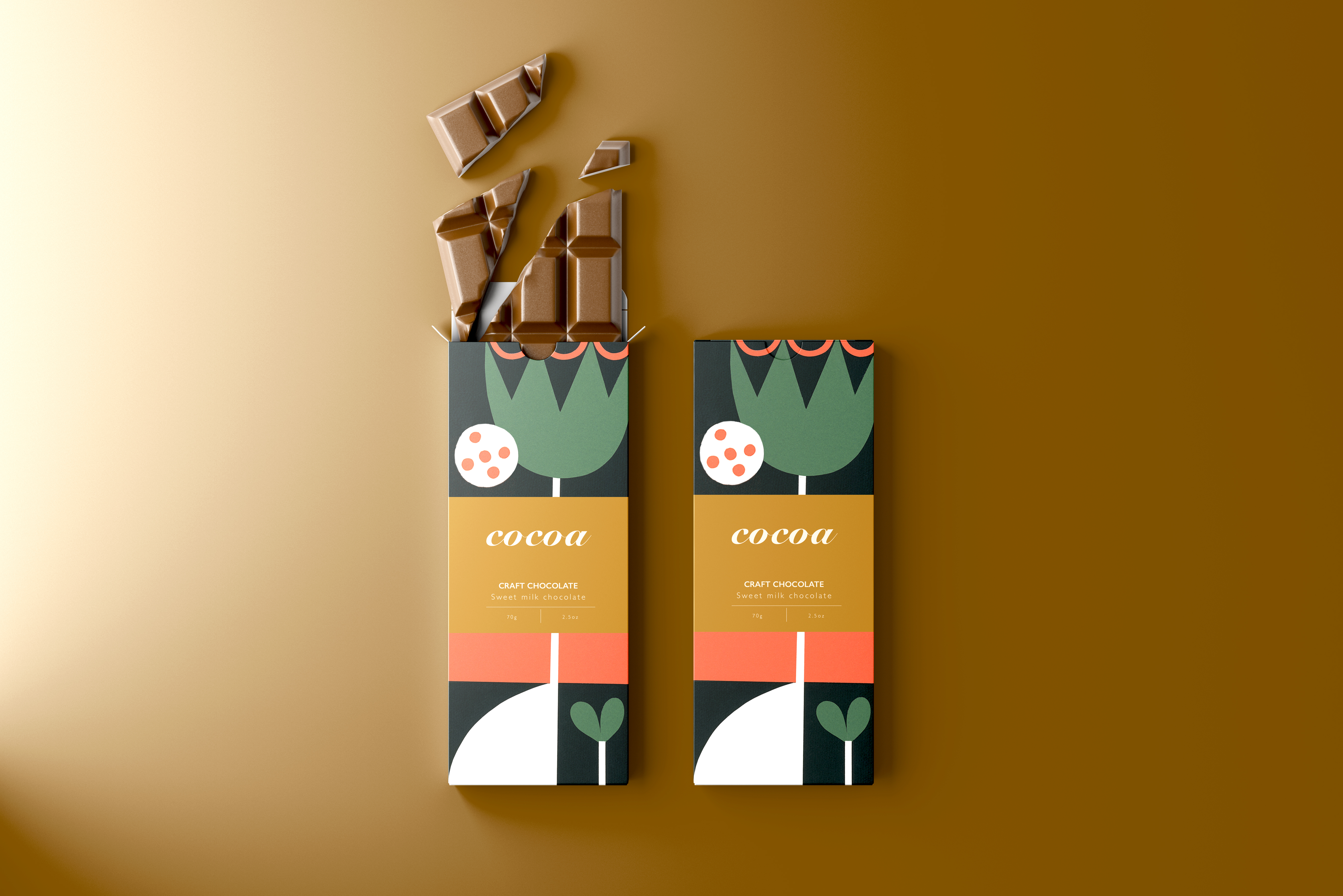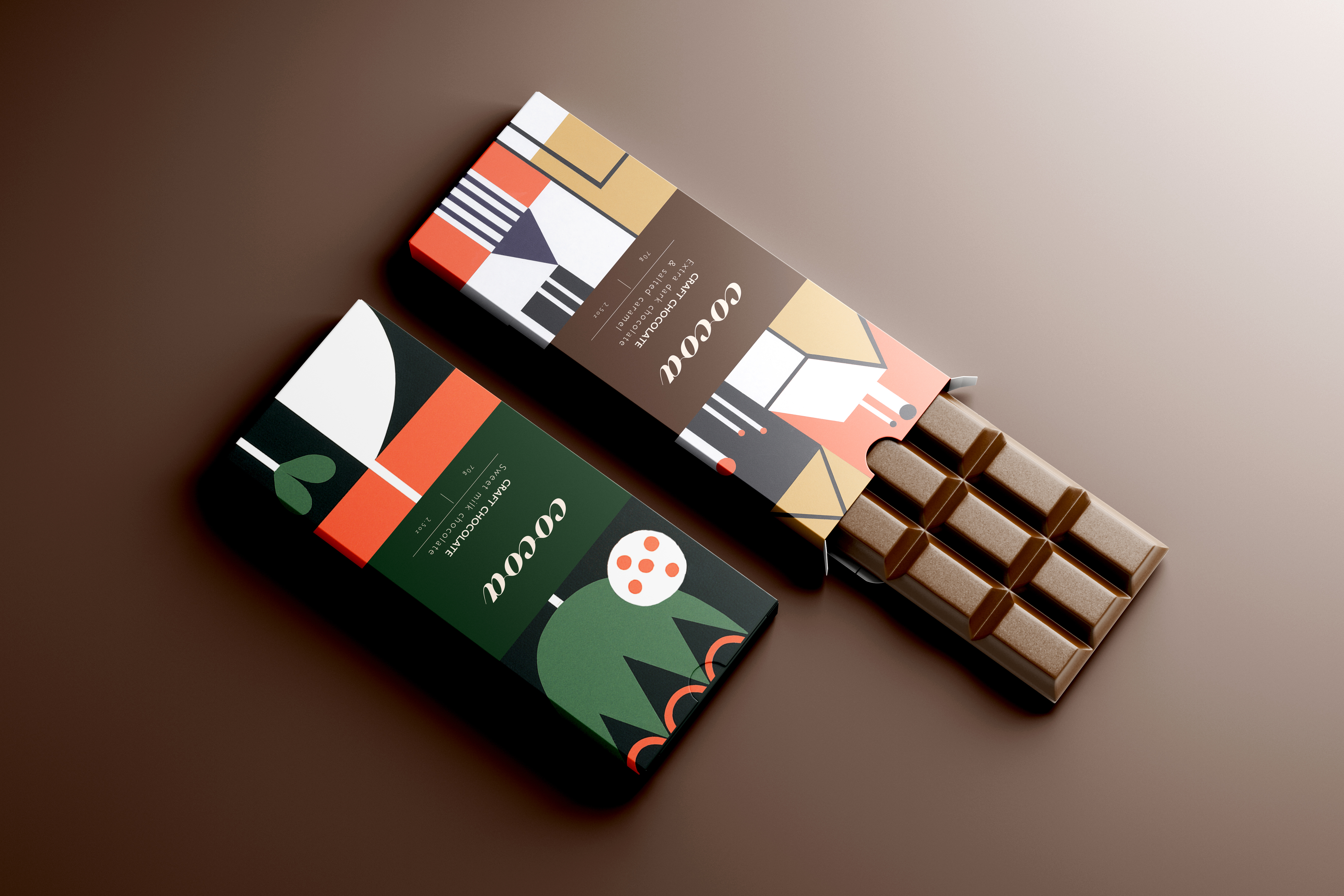Mockups for <Cocoa> chocolate tablet packaging.