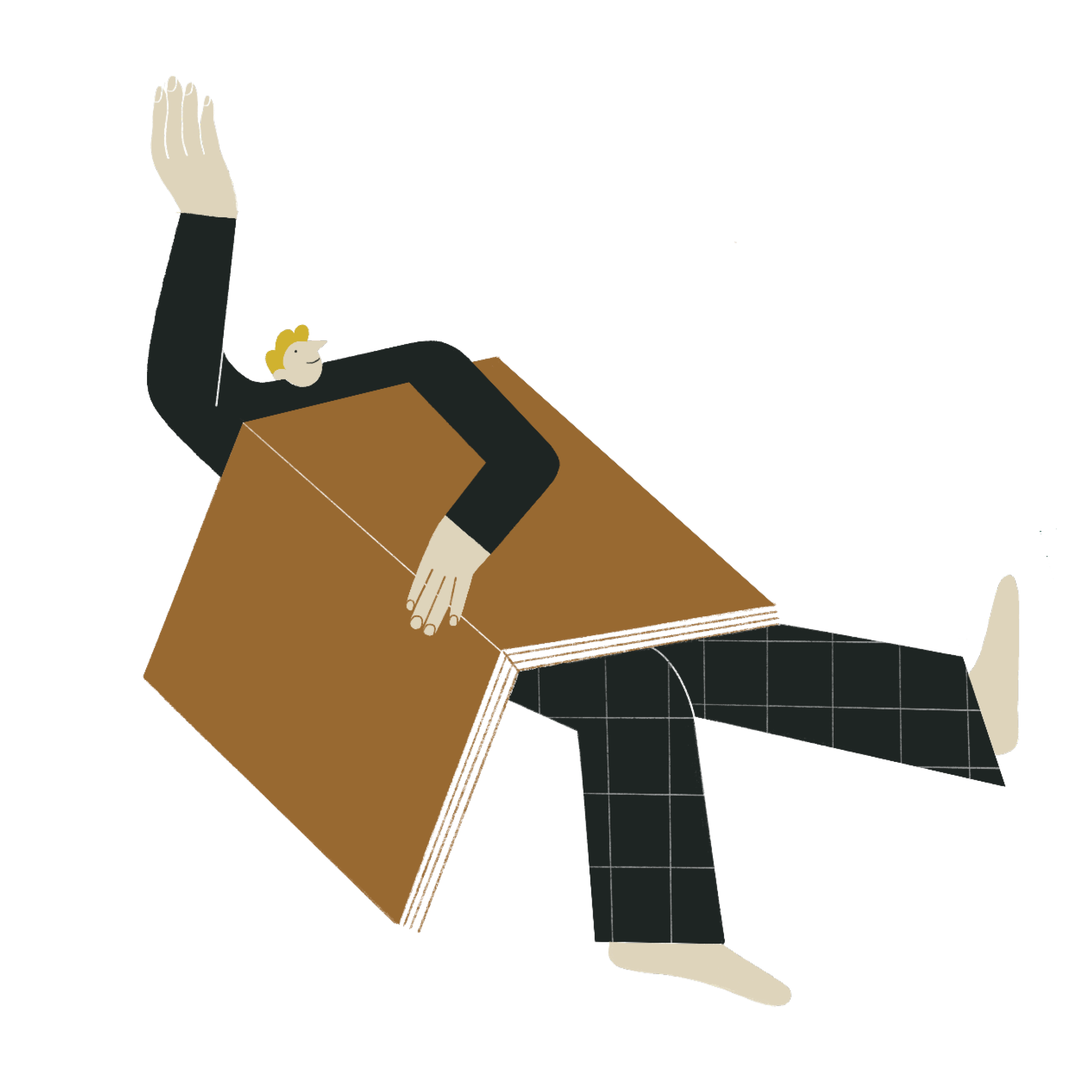 The central image features five characters lifted by the inspiration of books, forming a circle in which they support one another. This concept reflects the essence of the booksellers’ guild in Spain: community, collaboration, and a shared passion for reading.