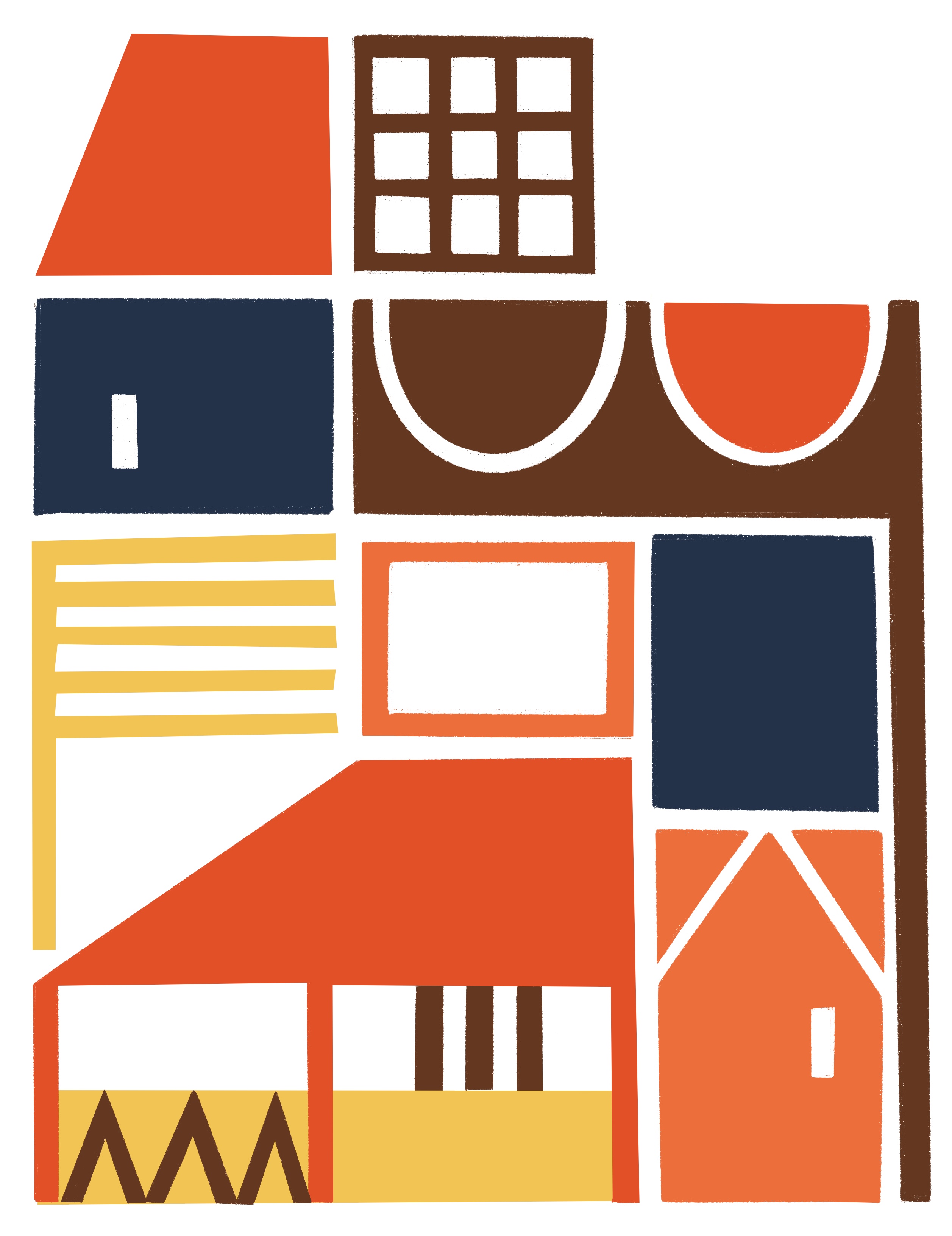 Illustrations for the digital summer issue of In These Days on housing organization.