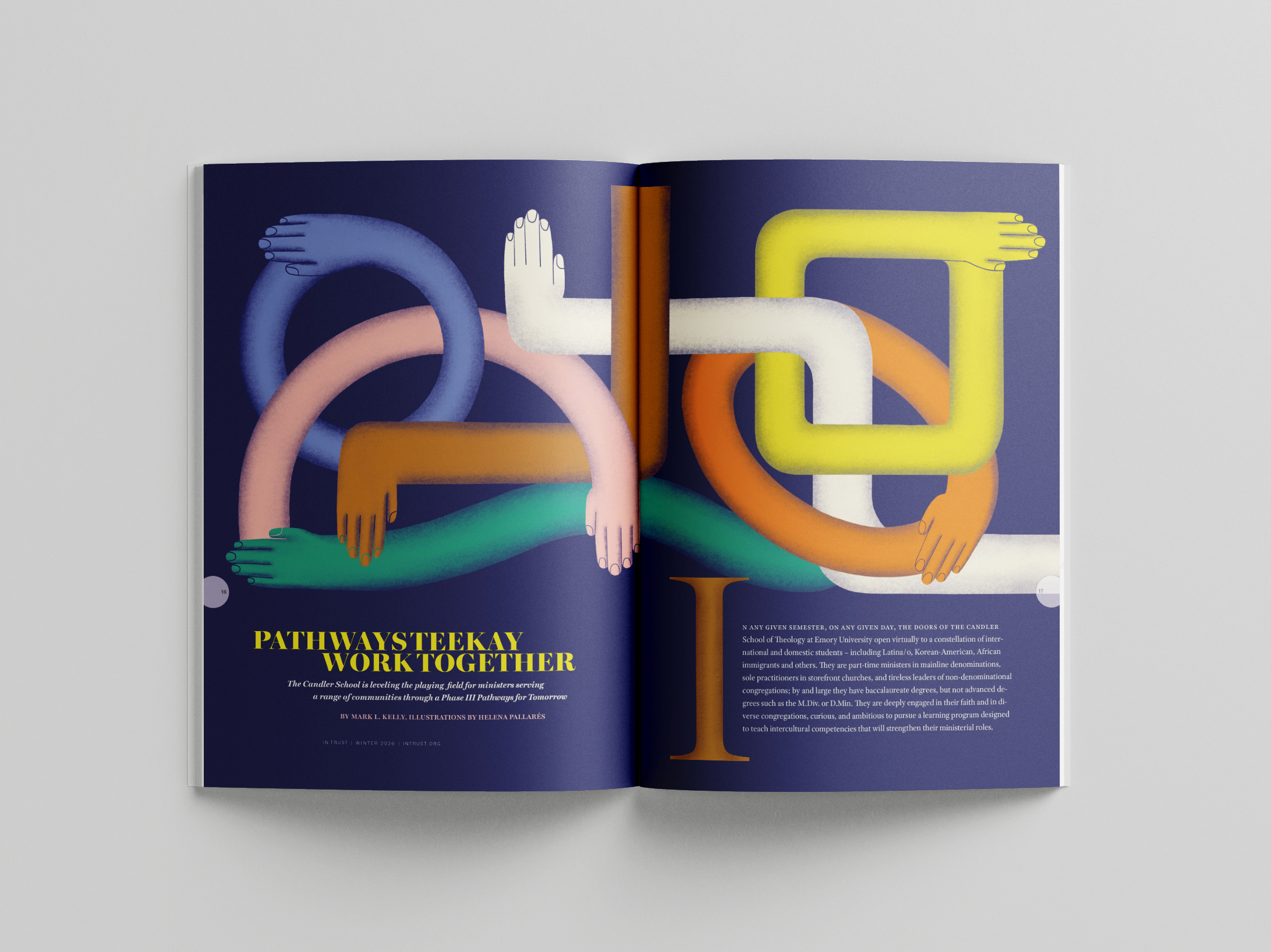 “An intrincate collaboration” Illustrations for In Trust Magazine on La Mesa, Emory University’s certificate program fostering diverse, inclusive, and community-centered theological education.